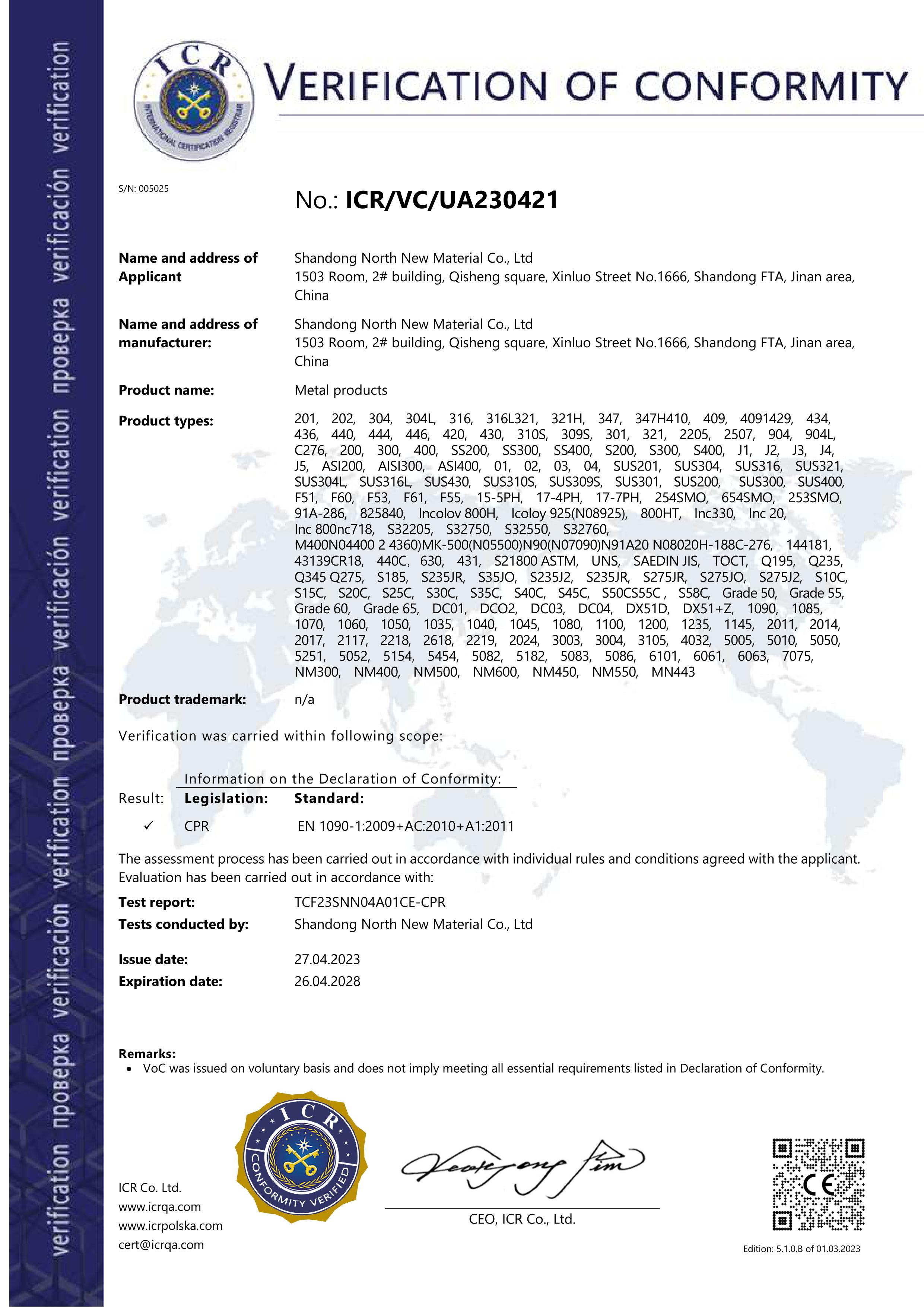 Shandong North New Material Co., Ltd is located in Jinan city, Shandong province, near Tianjin and Qingdao port. It is a diversified private enterprise, involving steel trade, production and processing, international trade and other fields, which incorporates the processing & manufacturing of Stainless Steel Coil, Stainless Steel Sheet, Stainless Steel Pipe, Cold-rolled Steel, Galvanized Steel, Galvalume Steel, and Prepainted Steel, sales and logistics. The company is currently in a stage of rapid development, and has long-term strategic cooperation with Shandong Iron and Steel Group (Jinan Steel, Laiwu Steel, Rizhao Iron and Steel), Shougang, Baotou Steel, TISCO, Baosteel and other steel plants. The total investment of the project is 1.8 billion RMB, covering an area of 116 acres, with an annual capacity of 900,000 tons.